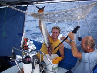 Mark shows off with a Spanish Mackerel - they taste delicious |
