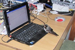 A tame and tired swallow visits - unfortunately he died later on |